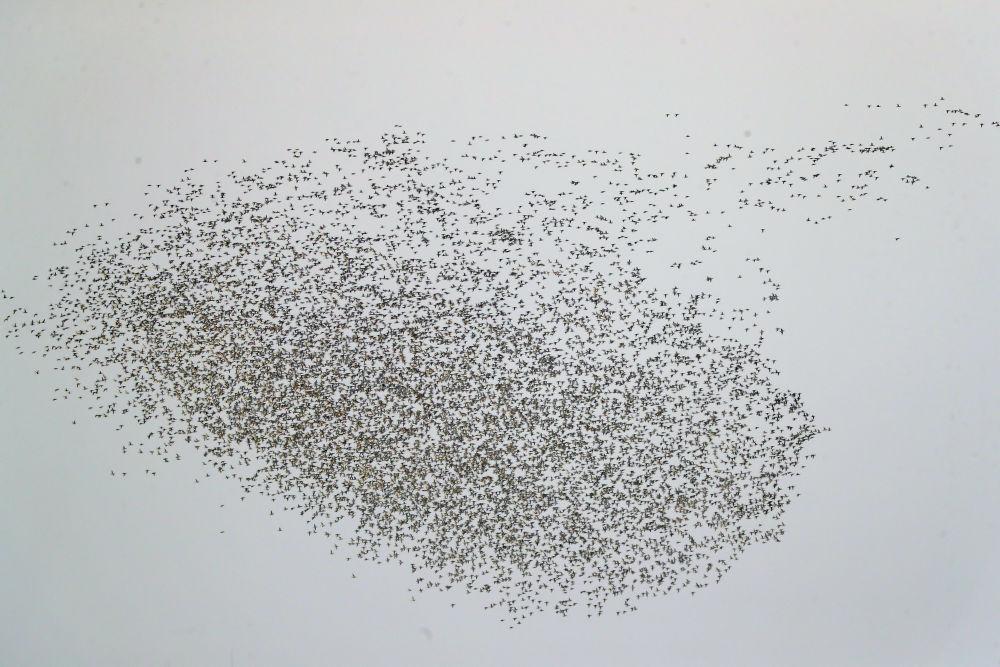 3月15日,在辽宁省法库獾子洞国家湿地公园拍摄的“鸟浪”。