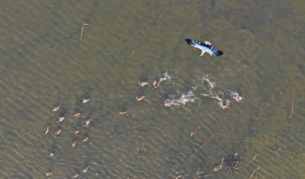 3月15日,在辽宁省法库獾子洞国家湿地公园拍摄的候鸟(无人机照片)。