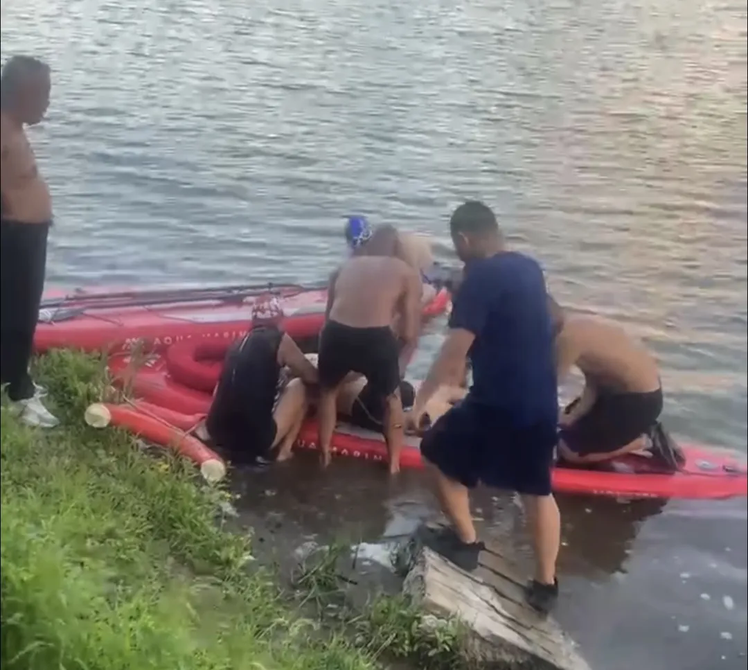 几人合力将溺水者安全拖上了岸