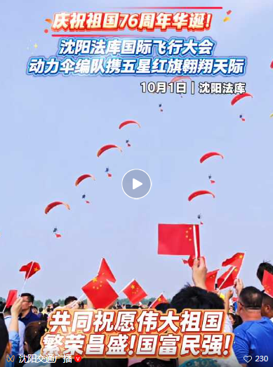 燃哭了!沈阳法库上空“红”动国庆!动力伞拉旗伴飞,天地同唱《歌唱祖国》