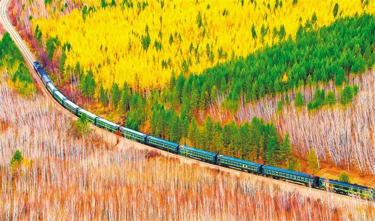10月2日,黑龙江省大兴安岭漠河市九曲十八弯,金秋山林色彩斑斓。 孙立君摄(中经视觉)