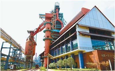 湖北省武汉市青山区武钢文化旅游区生动展现着新中国钢铁发展史,吸引众多游客参观。图为第五批国家工业遗产武钢一号高炉外景。