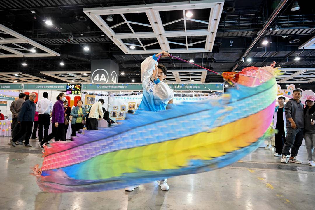 10月16日,辽宁中医药大学第二届中医药文化夜市(膏方节)在沈阳新世界博览馆拉开帷幕。辽宁中医药大学国际教育学院展区前人潮涌动,不同肤色、不同国籍的留学生为大家献上舞龙、舞蹈表演,共80余名留学生和港澳台学生参加此次活动,更有来自泰国、加纳、匈牙利等国家的留学生作为“洋中医”坐诊把脉,他们用流利的中文以及专业的中医术语与市民交流,展现中医药文化的国际魅力,吸引众多体验者驻足参与。