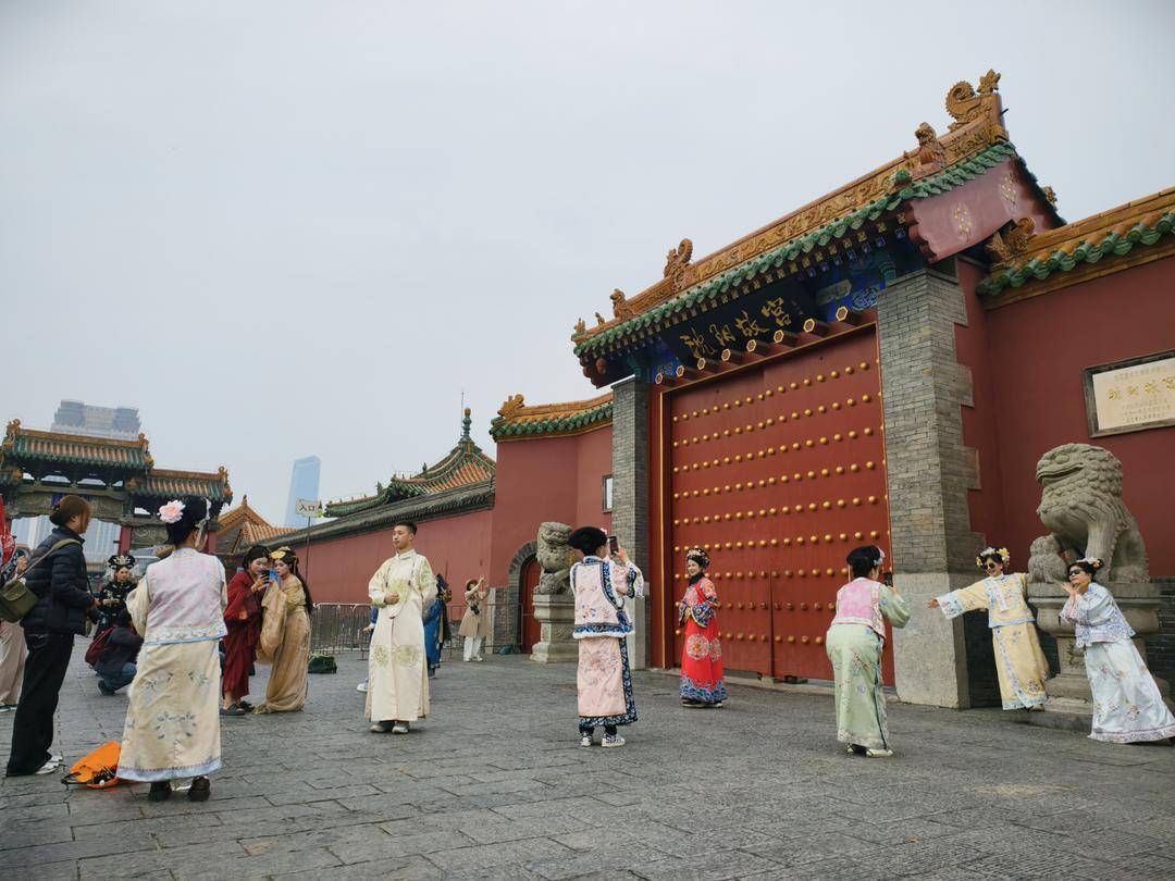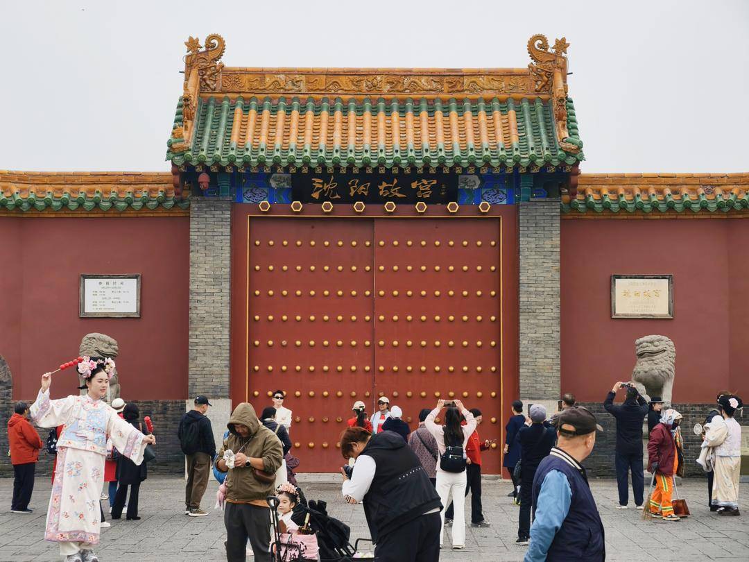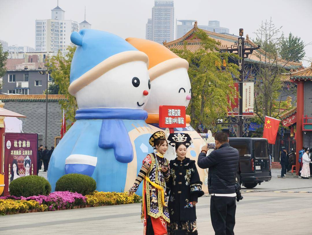 近日,沈阳故宫古风氛围浓厚,众多游客身着传统服饰穿梭于红墙黄瓦间,以古建筑群为背景拍照留念,成为秋日里景区独特的风景线 。