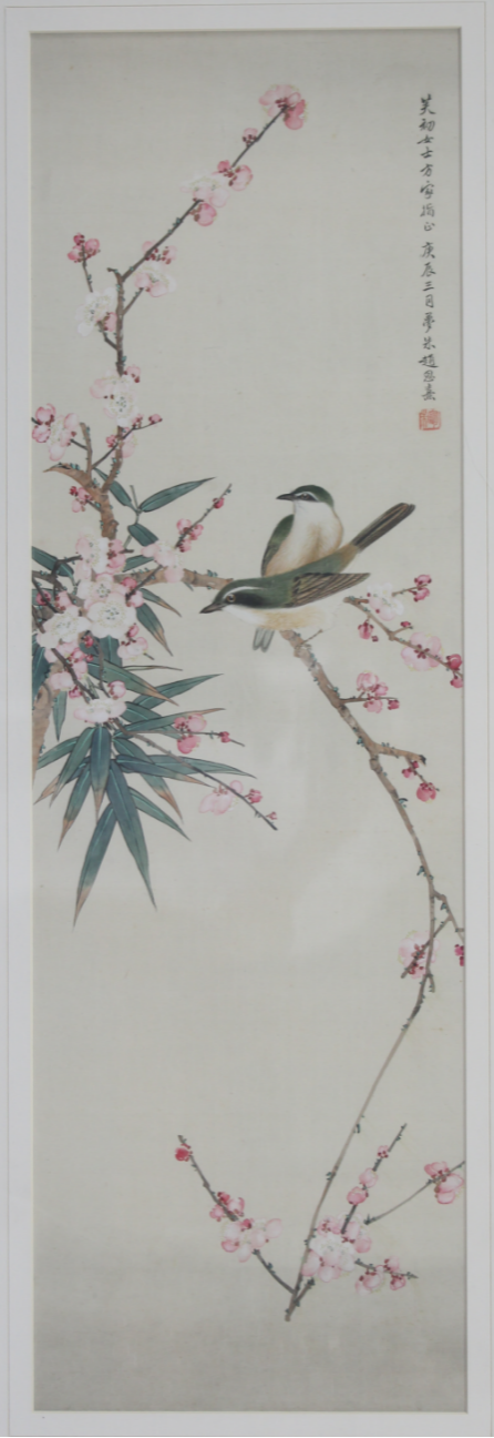 赵梦朱(1892-1985)字明湖,河北雄县人,曾任辽宁省文学艺术界联合会副主席、中国美术家协会辽宁分会副主席,鲁迅美术学院教授。代表作品有《玉兰绶带》《荷》《白凤》等,其中《玉兰绶带》获第二届全国美术作品展览优秀作品奖。
