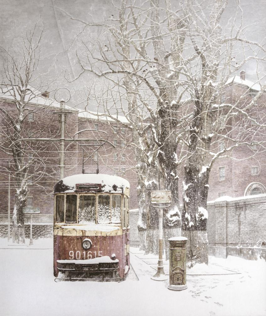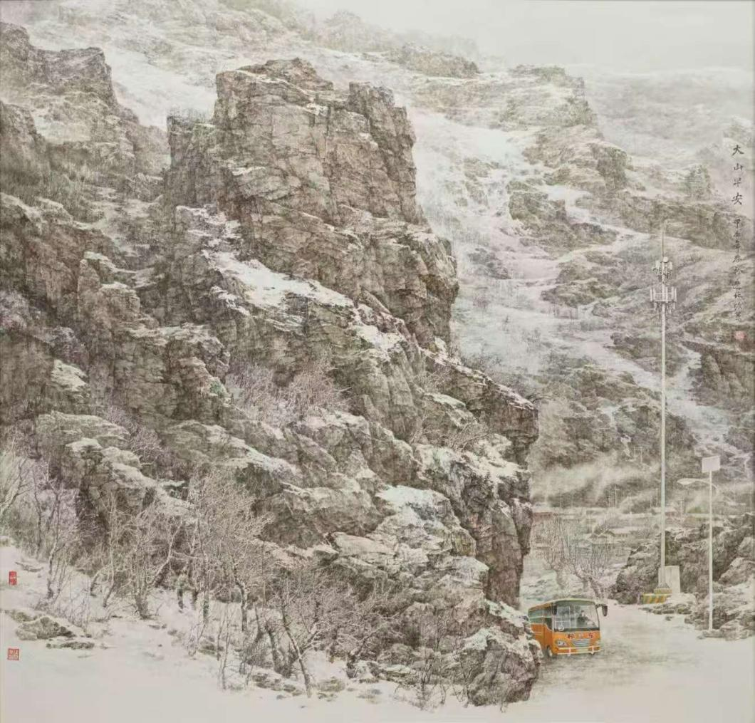 张策(1957-)辽宁铁岭人,曾任中国美术家协会理事、中国工笔画学会副会长、辽宁省美术家协会副主席等。作品《大山正月》获第十二届全国美术作品展览银奖,《雪野》《大地回春》《圆梦之路》《大山早安》入选第七届、第十一届、第十三届、第十四届全国美术作品展览。