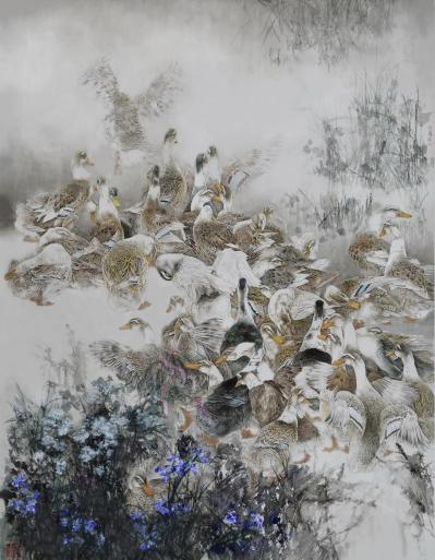 邢世靖(1958-)辽宁本溪人,曾任中国工笔画学会常务理事、本溪画院院长、本溪市美术家协会主席等。该作品获第十一届全国美术作品展览铜奖。