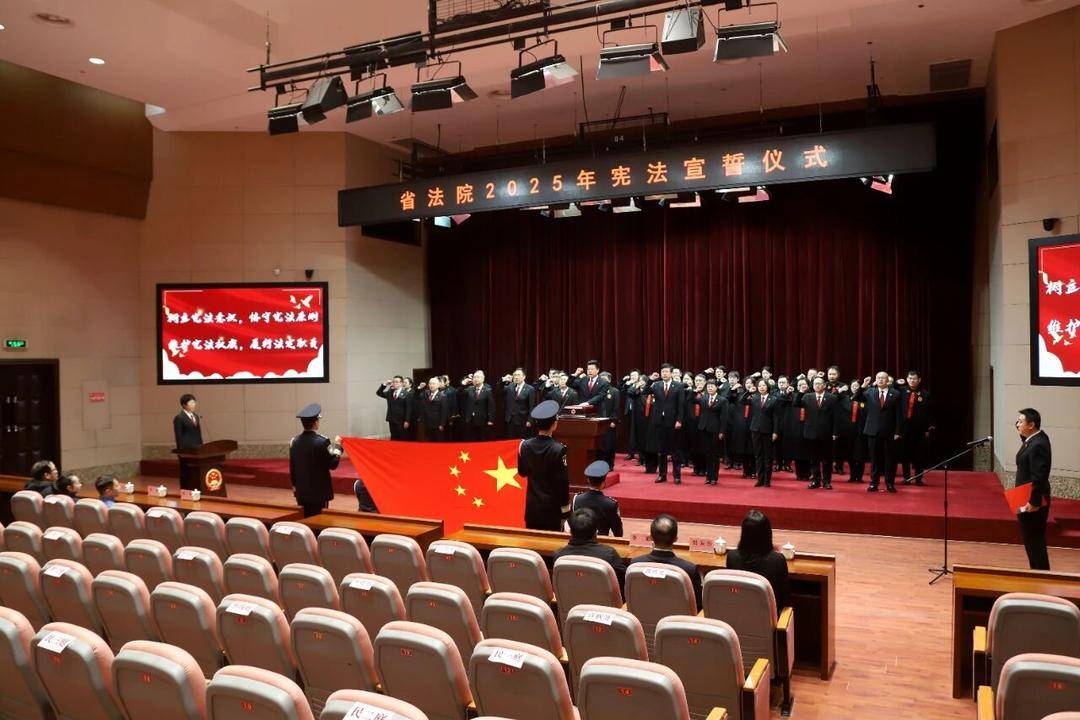在“12·4”国家宪法日来临之际,12月3日,省法院举行宪法宣誓仪式,进一步激励和教育干警忠于宪法、遵守宪法、维护宪法,全面履职,奋勇争先,努力让人民群众在每一个司法案件中感受到公平正义。