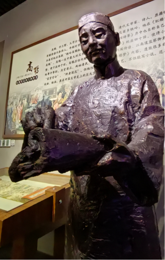 铁岭市博物馆二楼展厅内,立有高鹗持书雕像,从展示的文图史料可以了解其不凡的人生经历。