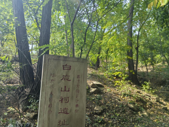 白塔子镇杨树沟村,就在大阳山山下,当地人对曹操与乌桓征战大阳山的故事多有耳闻。村民方志斌还热心引领记者来到了大阳山山腰,只见一个写有“白鹿山祠遗址”石碑立于林木之下。据史料记载,白鹿山祠遗址属于魏晋时期,部分房基遗迹尚能看清。该遗址应是被曹操击败的乌桓残部为蹋顿所建祠堂。