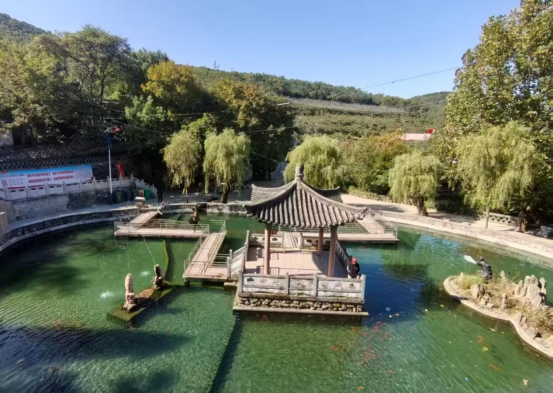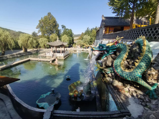 临近瑶琴洞西南,还有一口马蹄井,虽井水较浅,但四季不绝。响水寺院落中古建为明清遗存,5株数十米高梧桐高高耸立,已历经百年,依旧生机勃勃,也是一奇。