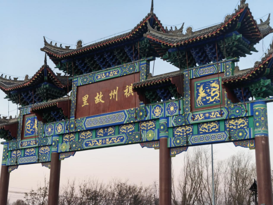 写有“祺州故里”的仿古牌坊立于小塔子村村口。