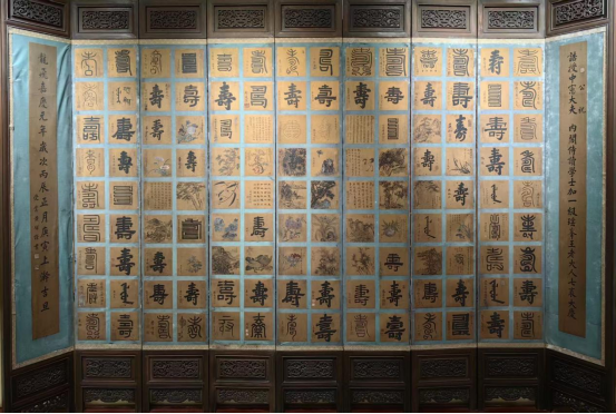 王尔烈书房展示的百寿屏。