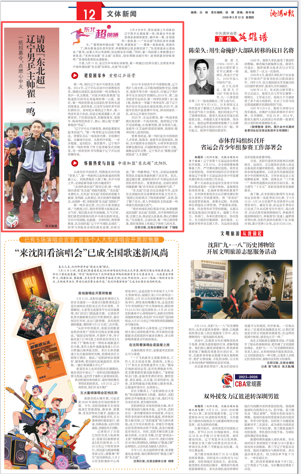 2026年3月12日沈阳日报12版