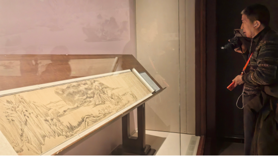 观众于辽宁省博物馆观赏董其昌绘制的《烟江叠嶂图》。