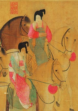 宋摹张萱《虢国夫人游春图》现存版本为北宋摹本,传为宋徽宗亲摹。