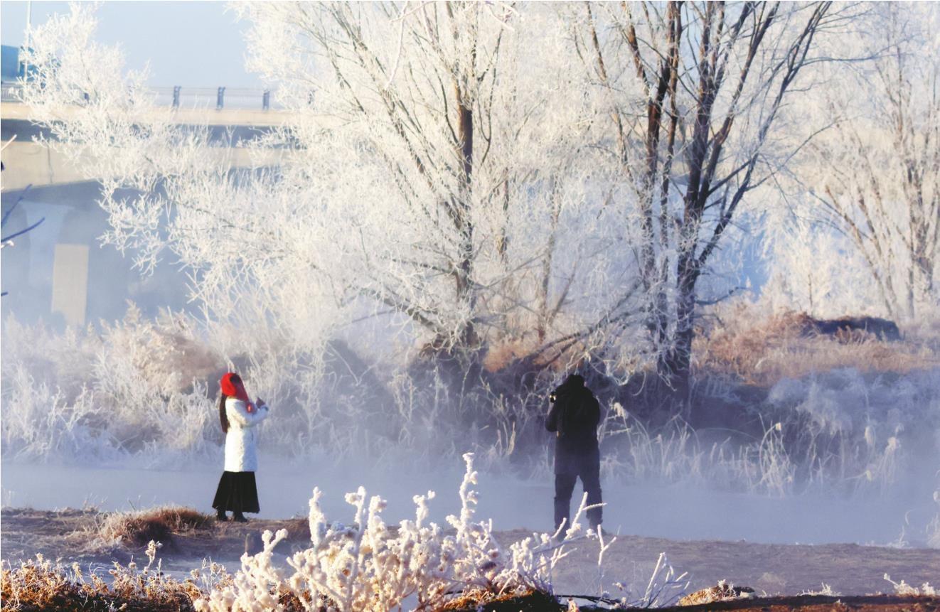近日,朝阳市双塔区大凌河下游出现大面积雾凇。
