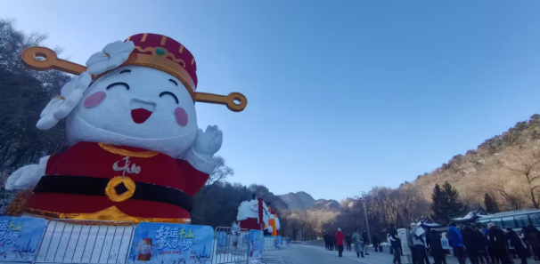 记者沿千山正门向桃花溪谷、大佛景区数公里黄金游览线一路前行,山路两侧众多雪人雪雕不断映入眼帘,造型各异,生动鲜活,如“马上有钱”和“马上脱单”雪雕组合,携真诚马年祝福,承载满满期许,松鼠、小海豹卡通小雪雕则憨态可掬,萌趣十足。