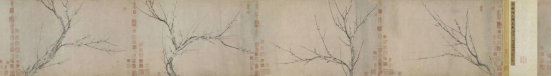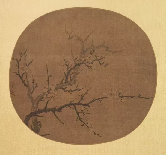 《梅花图册》是两宋之际书画家杨无咎以纨扇形式创作的一幅墨梅画,作者使用不同笔墨表现梅干、枝条与花朵的质感意态,梅干重墨枯笔,苍劲朴拙,枝条饱满挺劲,花瓣和花苞用淡墨勾勒,浓墨点花蕊,萧疏有致,清雅高洁。在展出期间给人留下深刻印象,值得回味咀嚼。