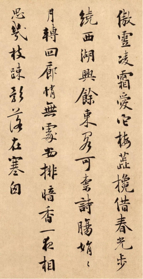 雪中梅竹图卷由徐禹功《雪中梅竹图》、元代吴瓘《梅竹图》、《墨梅图》三图组合而成,有33段书法题咏,颇为壮观,其中就包括杨无咎行书《柳梢青·梅花十首》。杨无咎极工书法,楷书学唐代欧阳询,达到了相当高的水平。他在《柳梢青·梅花十首》结尾处写下题咏初衷,“平生与梅有缘,既画之又赋之,自乐如此,不知观者以为如何也,然老境对花,时一歌之,岂欲投它人耳目,非知音不可以示也。”