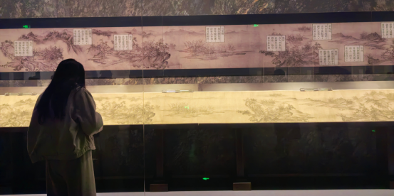 本次展出的是南宋时期的珍贵临摹本,长近10米。作者以大小斧劈皴画山石,造型严谨厚重,运笔精微入神,墨色秀润明丽,还巧用留白,营造了广阔的视觉效果,使观者在欣赏中获得广泛的想象空间。