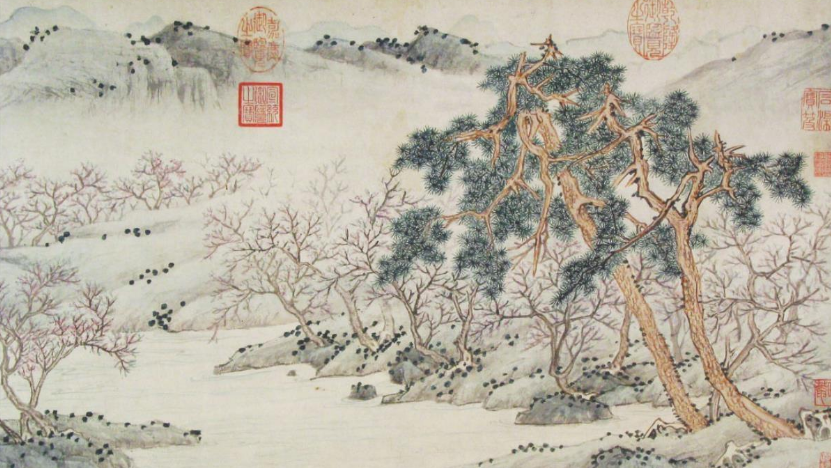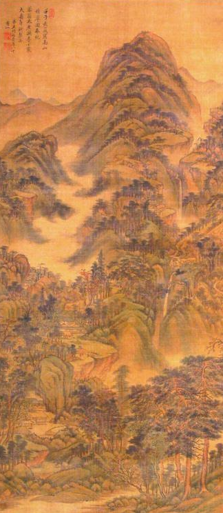 《南山积翠图》现由辽宁省博物馆收藏。此画作者王时敏师承董其昌,他精研宋元技法,其绘画理论对清初摹古画风有直接影响。